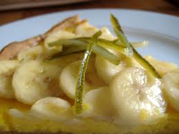 Incorporez au sirop les jus des fruits et les zestes, ainsi que les rouelles de bananes. Réservez quelques zestes pour la décoration.