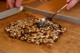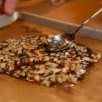 Faire légèrement dorer au four (200°) les noix, noisettes, amandes mélangées, puis quand elles sont refroidies, les hacher grossièrement. Ramollir le chocolat , ajouter les noix et bien mélanger. Laisser tiédir quelques minutes jusqu’à ce que la préparation soit assez épaisse pour être travaillée avec une cuillère. Beurrer une feuille de papier sulfurisé. A l’aide d’une cuillère à café, déposer des petits tas de pâte sur le papier. Laisser refroidir, puis mettre les croquants dans des caissettes en papier.